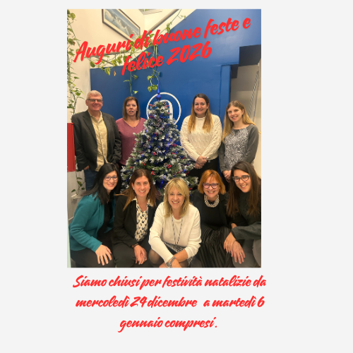si avvisa la Spettabile clientela che i nostri uffici saranno chiusi per le festività natalizie da mercoledì 24 dicembre 2025 all 6 gennaio 2026 compresi.