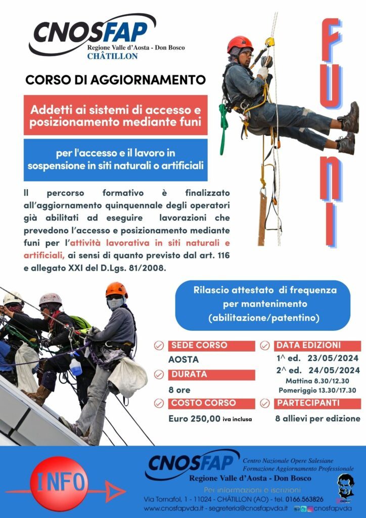 CORSI DI AGGIORNAMENTO PER ADDETTI LAVORAZIONI SU FUNI SITI NATURALI O ARTIFICIALI (Modulo A) – 24 e 25 maggio 2024